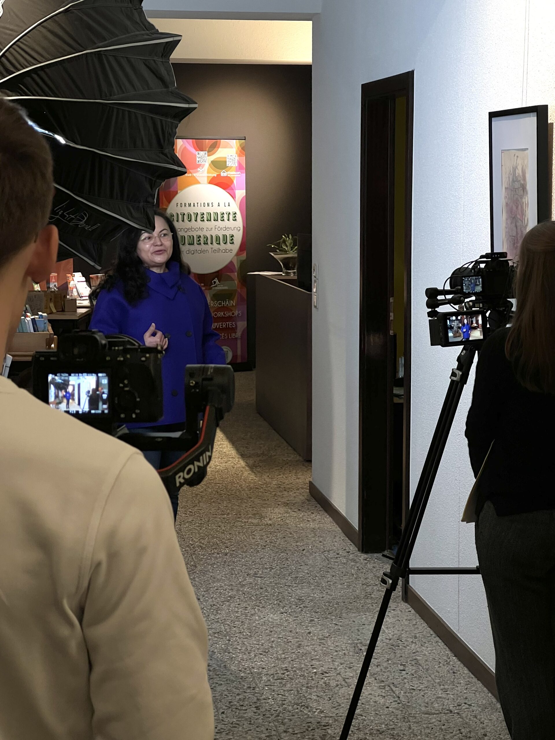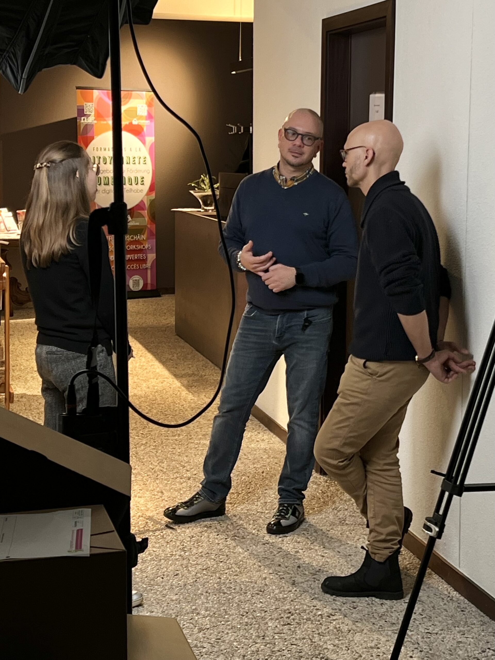 23.02.2024Vor wenigen Tagen hieß es in der EwB: „Bitte Ruhe! Aufnahme!“ Ein professionelles Filmteam war bei uns zu Gast, um Interviews mit Besucher*innen der i-Stuff zu führen. Auftraggeber war das Ministère de la Digitalisation, das die Aufnahmen im Rahmen des nationalen Tages der digitalen Inklusion (17. Mai) erstellen ließ. Auszüge aus den Interviews werden dann am Aktionstag selbst auf den verschiedenen Social Media-Kanälen des Ministeriums sowie auf dem Portal „zesummendigital.lu“ veröffentlicht.