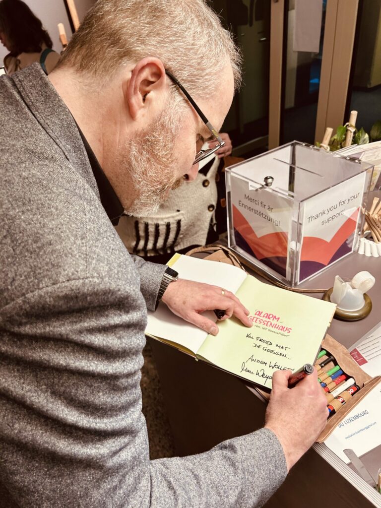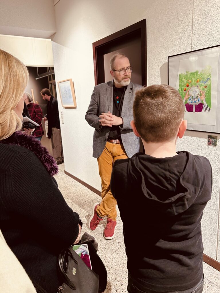 Zur Vernissage am 10. Januar konnten wir rund 20 Gäste, darunter auch einige Kinder, herzlich willkommen heißen. Im Rahmen der Veranstaltung signierte der Autor Marc Weydert mehrere Exemplare seines Bilderbuchs.