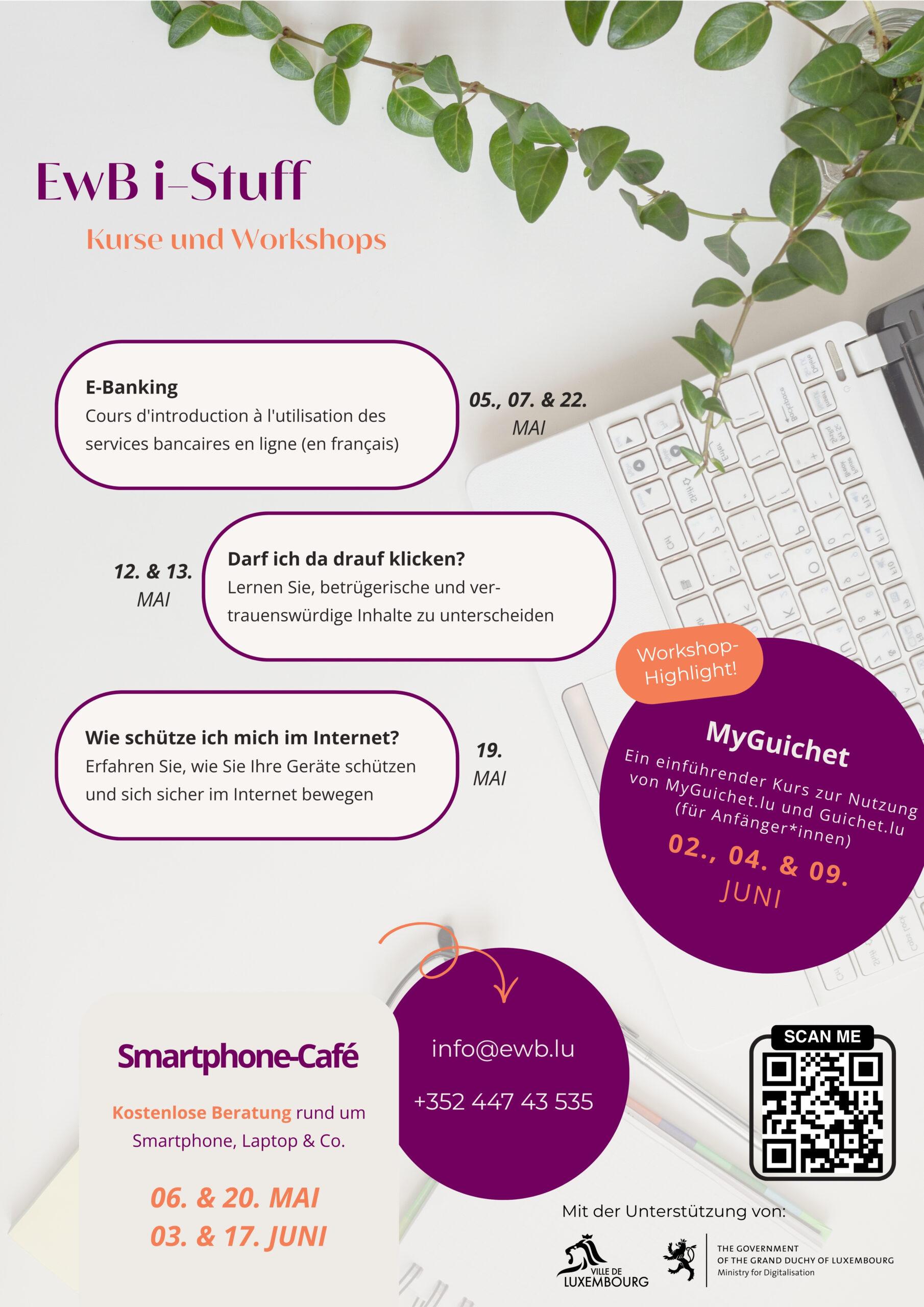 Die Mitmach-Stationen wurden geleitet von den EwB-Mitarbeiter*innen Philippe Funk, Yannick Fella und Leslie Fischbach sowie K.I.-Kenner Olivier Koos.