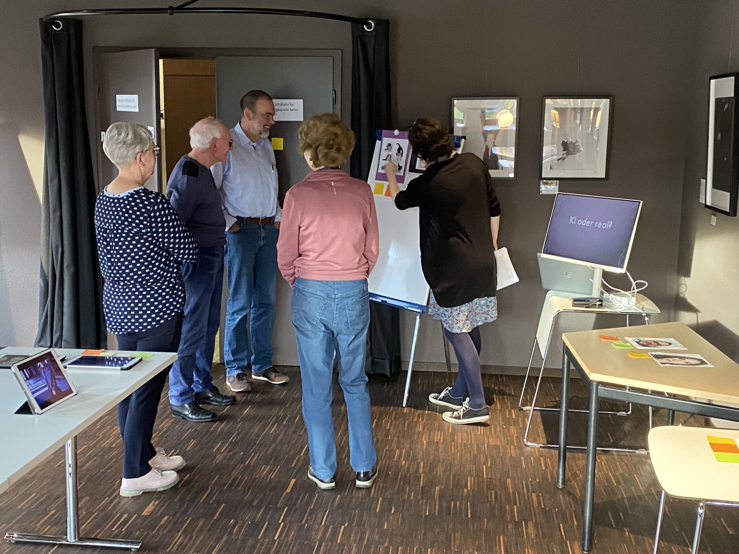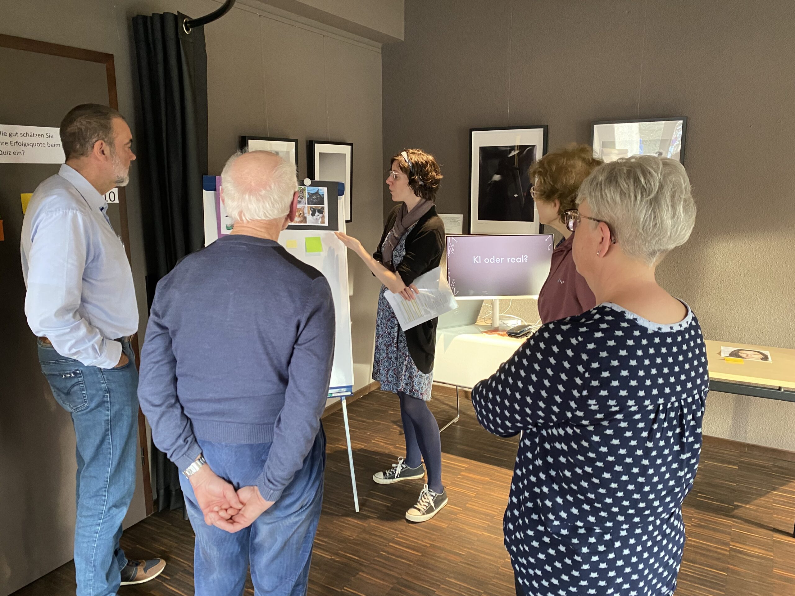 „KI oder real“ war der Titel eines weiteren Ateliers. Hier konnten sich die Teilnehmenden mit EwB-Mitarbeiterin Leslie Fischbach darin testen, ob sie KI-generierte Bilder von „echten“ Fotos oder Kunstwerken unterscheiden können. Dazu erfuhren Sie ein paar Tricks, woran KI-generierte Inhalte zu erkennen sind. Dieses Übung war sehr gefragt und konnte die meisten Teilnehmer*innen verbuchen. Überhaupt kamen die interaktiven Elemente der einzelnen Ateliers bei den Teilnehmenden sehr gut an.