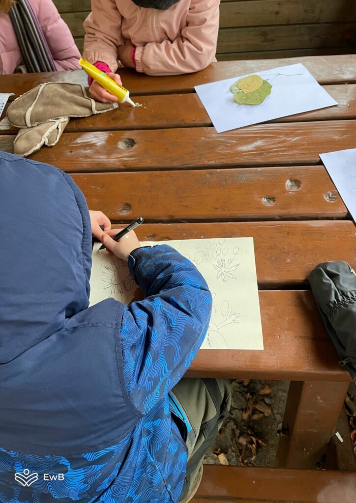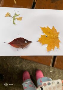 Natürlich waren auch in diesem Monat wieder die „Waldwichtel“ und die „Walddetektive“ unterwegs. Bei den Kleinen ging es um den Herbst und es wurden Blätterigel gebastelt. Die Größeren beschäftigten sich mit dem Thema „Warum sind manche Tiere bunt und warum haben manche Tiere Tarnfarben?“. Am Schluss entstanden phantasievolle Bilder mit Tieren aus Blättern.