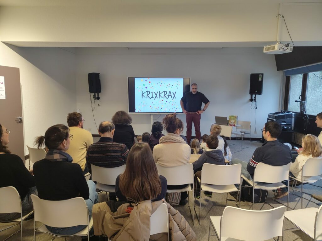 Die Krixkrax Bilderbuchausstellung war zwei Wochen lang in der EwB zu Gast – und ein voller Erfolg. In dieser Zeit konnten viele große und kleine Besucher begrüßt werden, die die Ausstellung mit viel Neugier und Begeisterung entdeckten.