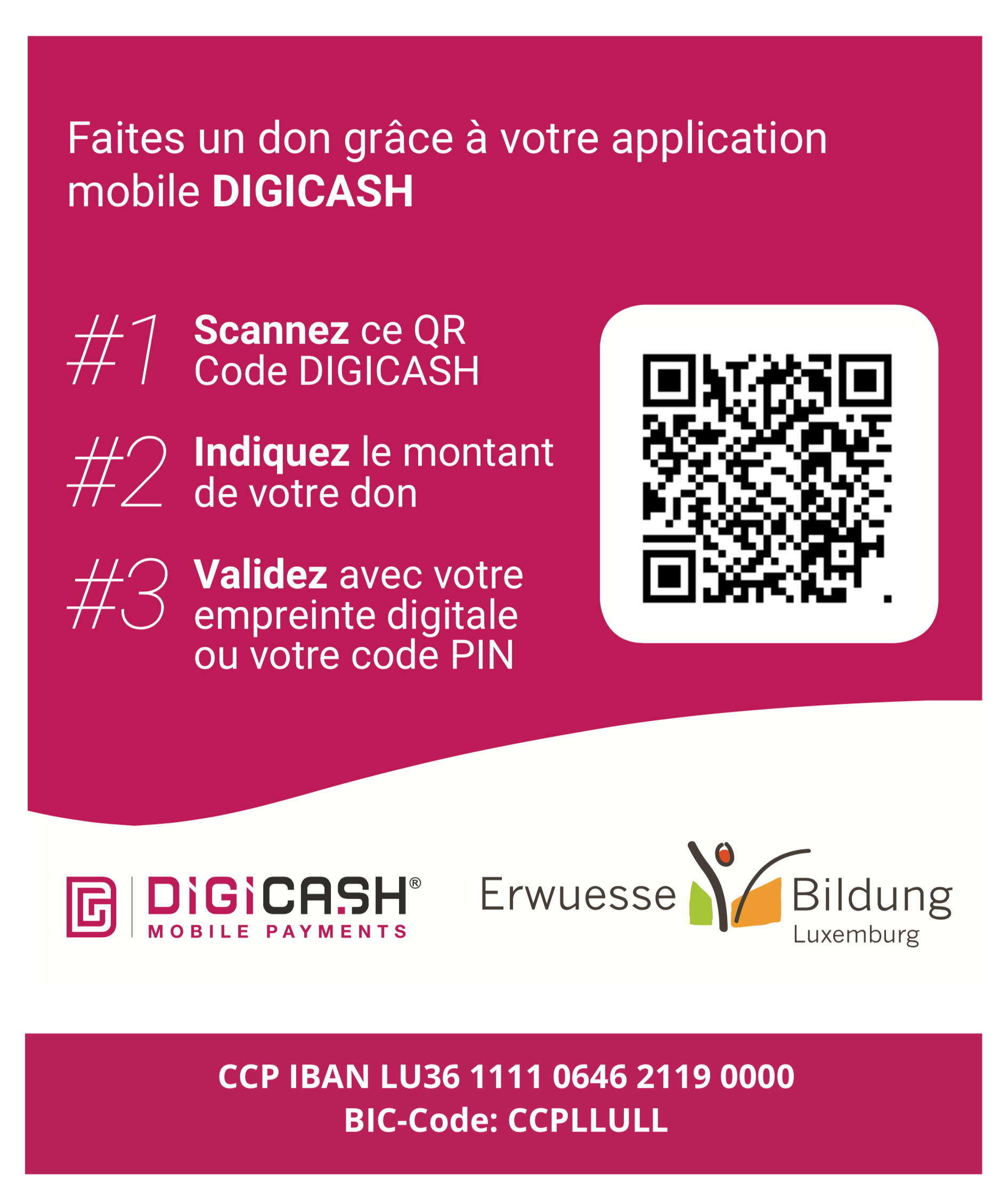 Soutenez le travail de l‘ErwuesseBildung, devenez vous aussi donateurs !